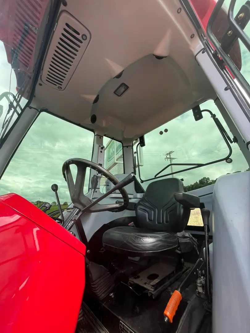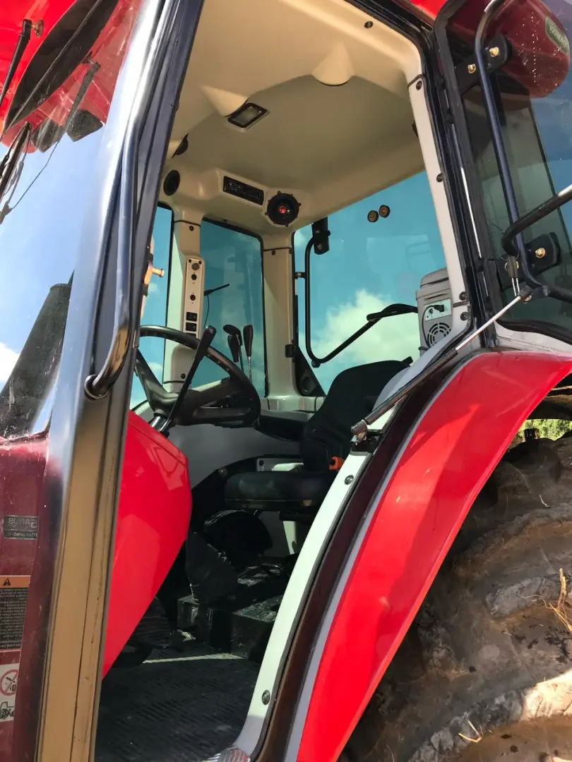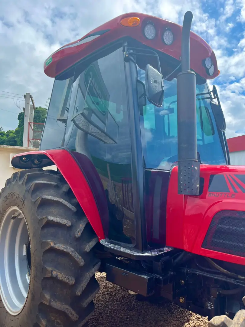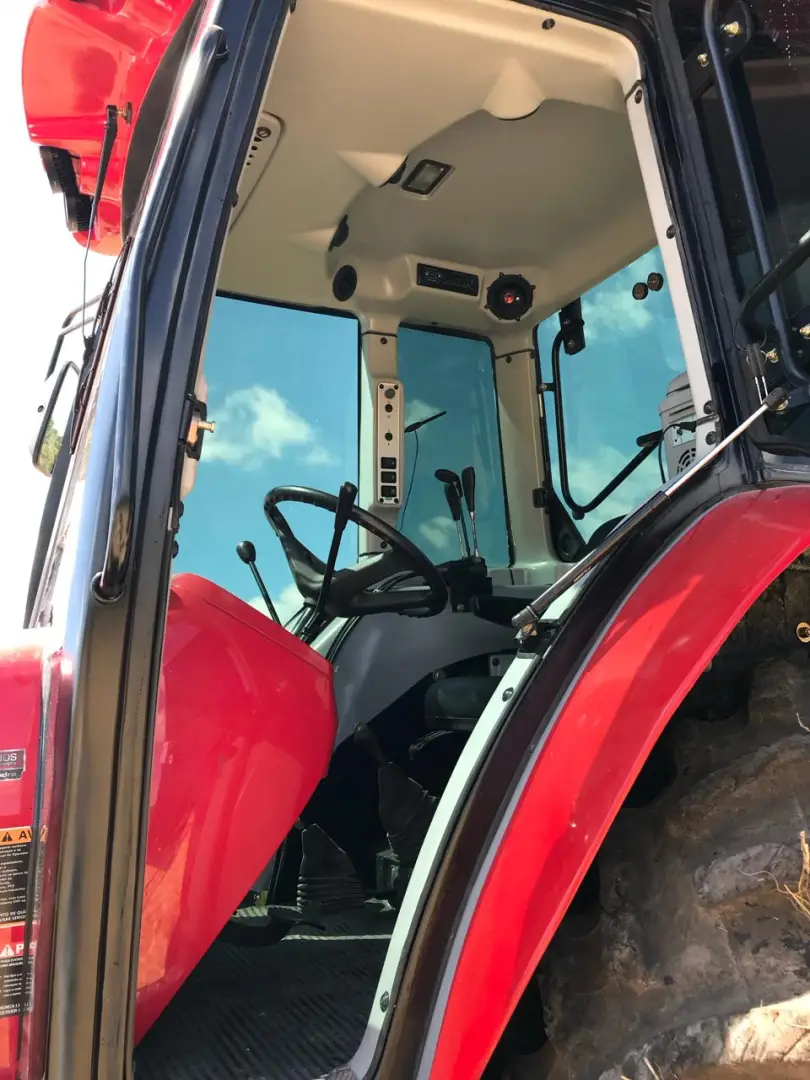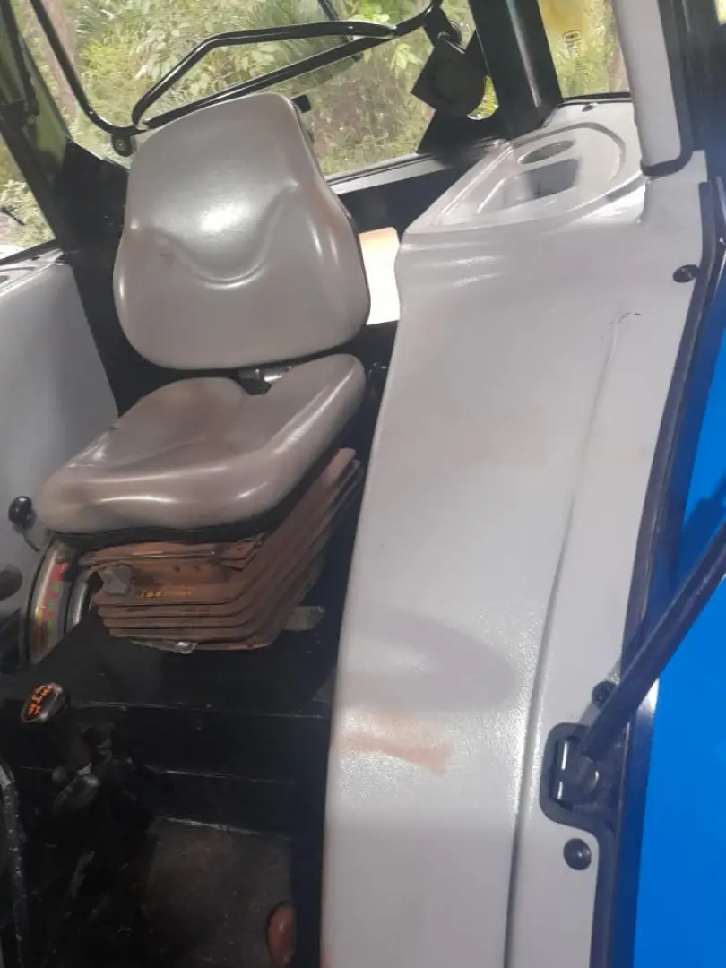 cabine instalada sobre coxins de borrachaEstrutura em aço com perfil reforçado nas colunasVidros temperados, cor verde, espessura de 6mmRegulagem de faróis dianteiros e traseirosExcelente iluminação internaAmpla visualização da área de trabalhoRetrovisores ajustáveisAcabamento interno de alto